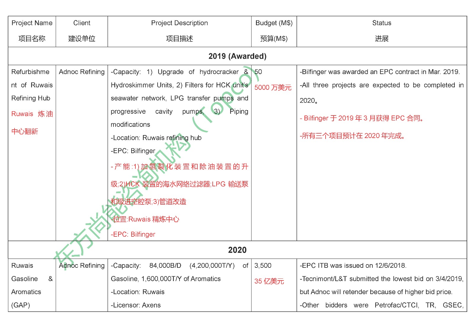 您现在的位置是:首页 > 拟在建项目网站首页拟在建项目 阿联酋炼油厂项目信息 管理员 2020-05-08 阿联酋炼油厂项目信息 TAG: 无标签 上一篇:210个石油化工项目列入2020年省重点,安徽福建广东项目最多 下一篇:中科炼化空分装置低温罐氮气投用 相关文章 特别推荐 【火爆出炉】CSSOPE 2025 全球采购对接会排期表 阅读 全球氢能项目大汇总,快来点击索要 阅读 随机推荐 埃克森美孚惠州乙烯项目全面开建 助力惠州打造世界级... 镇海炼化乙烯装置再次获评世界领先 2019-01-22 17:38:26 墨西哥:油气市场分包潮有望释放需求 2020-05-28 15:10:17 中信建设9.05亿美元新签伊拉克炼油厂EPC项目! 2021-09-07 11:08:50 FPSO投资热潮涌动 2024-10-28 11:10:45 点击排行 网络研讨会 | 石油化工智能工厂的数字化之旅 意大利塞班( SAIPEM)油气项目及采购计划:CSSOPE 为你解读 2019-03-14 15:21:04 集团公司召开2019年HSSE工作视频会议 2019-01-04 18:12:57 石油党员党建信息化平台交纳党费上亿元 2019-01-11 16:33:49 中国石油2022年集中采购招标公告 2022-02-11 20:43:22 标签 会议 中国石化新闻网 中国石油新闻中心 转载 原创 关注我们